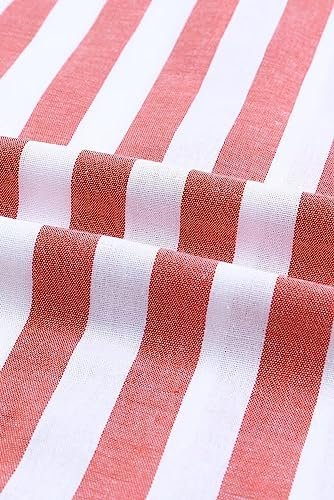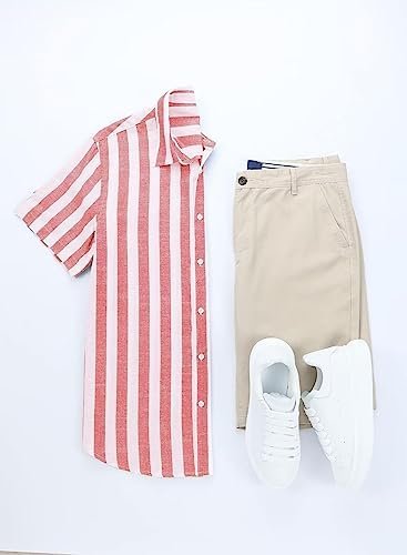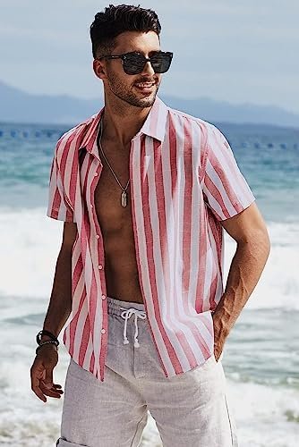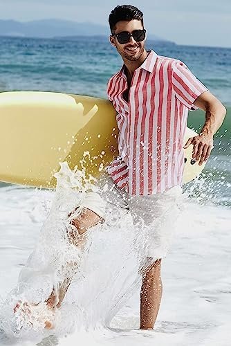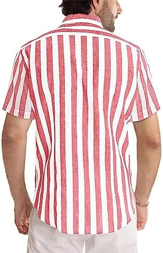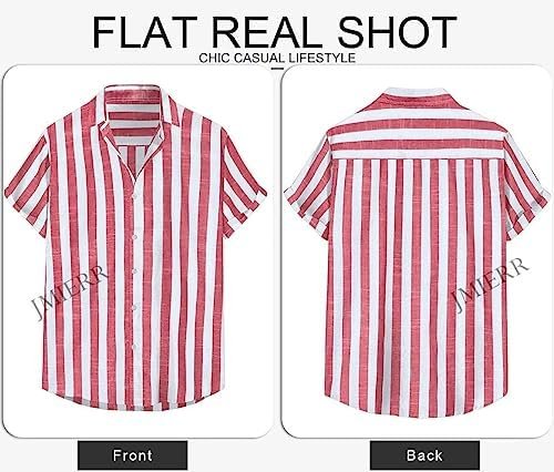 JMIERR Men’s Casual Stylish Short Sleeve Button-Up Striped Dress Shirts Cotton Beach Shirt