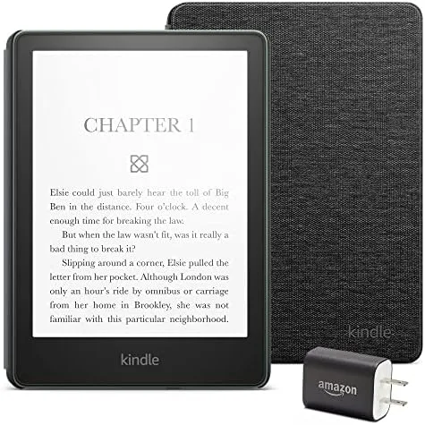 Kindle Paperwhite Essentials Bundle including Kindle Paperwhite (16 GB) – Agave Green – Without Lockscreen Ads, Fabric Cover – Black, and Power Adapter