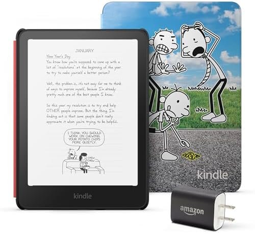 Kindle Paperwhite Kids Essentials Bundle including All-new Kindle Paperwhite Kids (16GB) – The Diary of a Wimpy Kid and Power Adapter