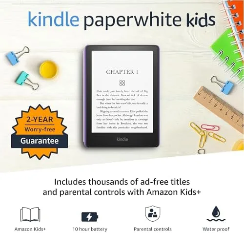 Waterproof and worry-free – Kids can take their Kindle Paperwhite Kids on the go to read by the pool or the beach. Kindle Paperwhite Kids has been tested to withstand accidental immersion in water. And with a 2-year worry-free guarantee, if it breaks, return it and we’ll replace it for free.