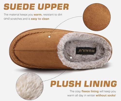 KuaiLu Mens Clog Slippers with Arch Support Suede Faux Fur Memory Foam Warm House Shoes Comfortable Slip-on Mans Bedroom Indoor Outdoor Slippers Rubber Sole Size 7-16