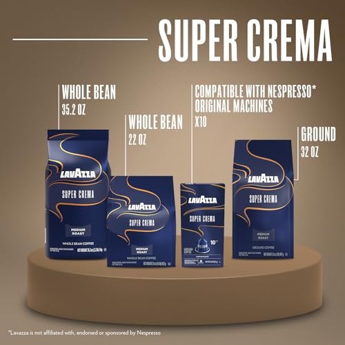 Lavazza Super Crema Whole Bean Coffee, Medium Espresso Roast, Arabica and Robusta Blend, 2.2 lb Bag, Package May Vary (Pack of 1)