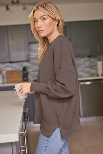 LILLUSORY Women‘s Fall and Winter Oversized Ribbed Knit Side Slit Pullover Tops