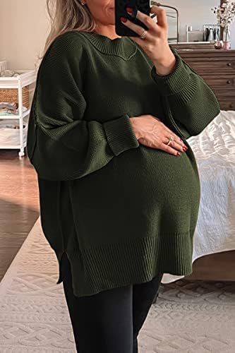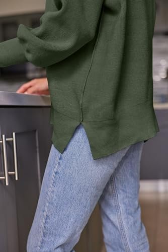 LILLUSORY Women‘s Fall and Winter Oversized Ribbed Knit Side Slit Pullover Tops