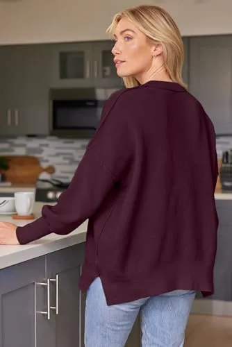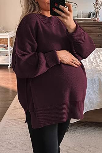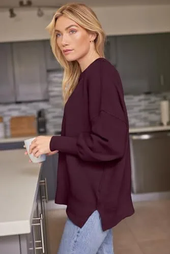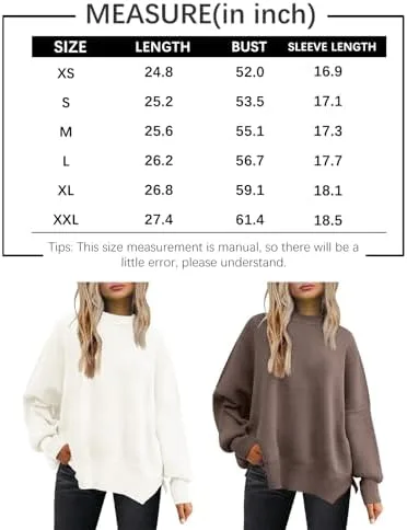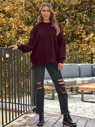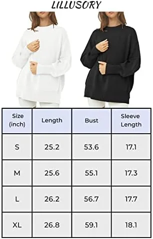 LILLUSORY Women‘s Fall and Winter Oversized Ribbed Knit Side Slit Pullover Tops