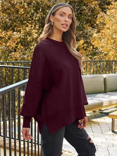 LILLUSORY Women’s Oversized Batwing Sweaters 2024 Fall Outfits Crewneck Ribbed Knit Side Slit Trendy Pullover Tops