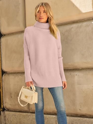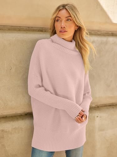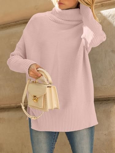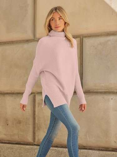 LILLUSORY Women’s Oversized Turtleneck Sweaters 2024 Fall Batwing Sleeve Ribbed Tunic Sweater