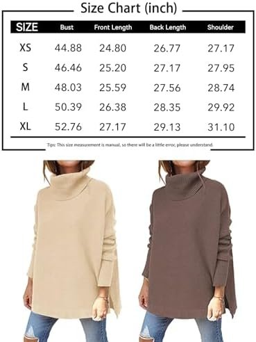 LILLUSORY Women’s Turtleneck Oversized Sweaters 2024 Fall Long Batwing Sleeve Spilt Hem Tunic Pullover Sweater Knit Tops