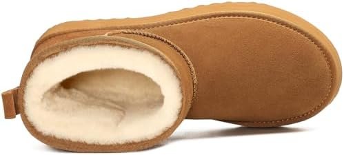 Litfun Platform Snow Boots for Women Winter Genuine Suede Ankle Mini Boots with Fur Lined