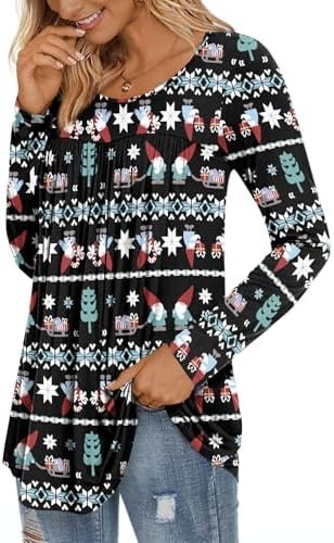 LONGYUAN 2024 Women’s Long Sleeve Casual Tunics Tops Winter Loose Shirts Flare Blouse Comfy Elastic Cute