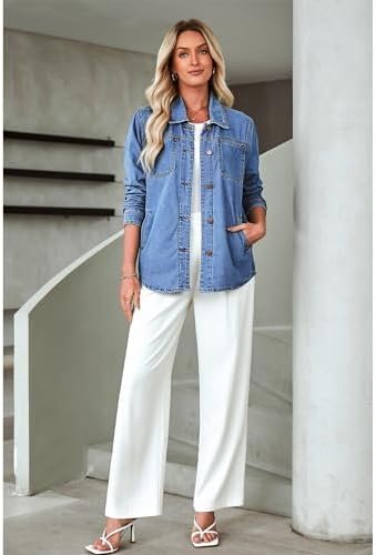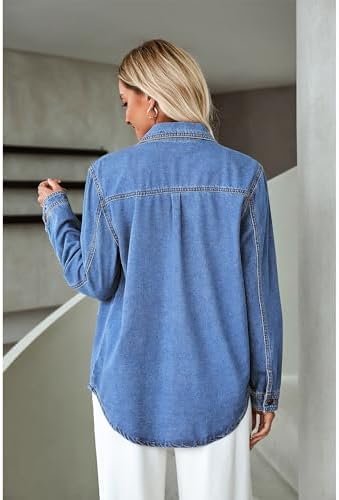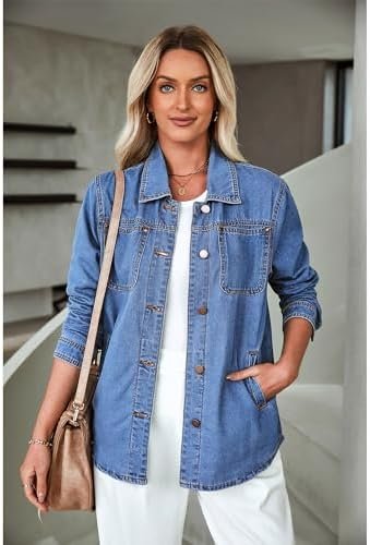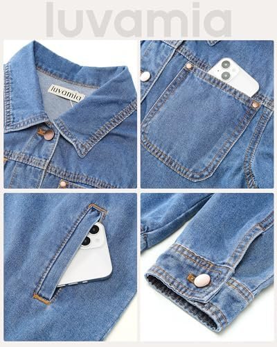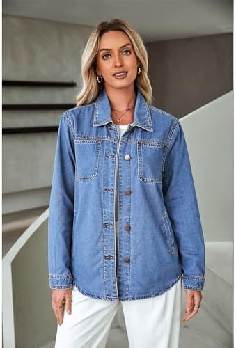 luvamia Denim Jackets for Women Trendy Long Sleeve Button Down Shirt Jacket Jean Shacket with Pocket Western Work Jacket