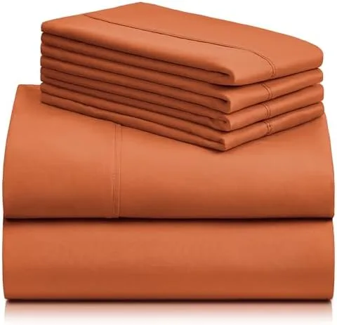LuxClub 6 PC Queen Sheet Set, Breathable Luxury Bed Sheets, Deep Pockets 18″ Eco Friendly Wrinkle Free Cooling Sheets Machine Washable Hotel Bedding Silky Soft – Autumn Orange Queen