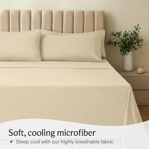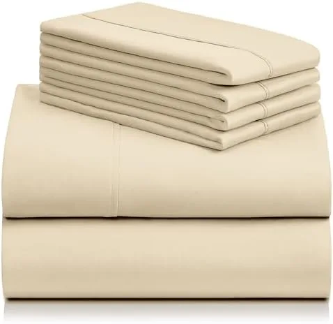 LuxClub 6 PC Queen Sheet Set, Breathable Luxury Bed Sheets, Deep Pockets 18″ Eco Friendly Wrinkle Free Cooling Sheets Machine Washable Hotel Bedding Silky Soft – Cream Queen