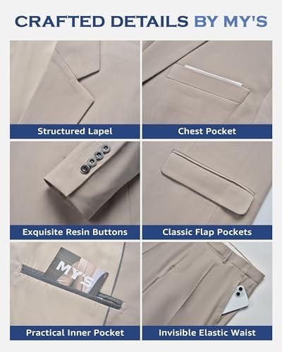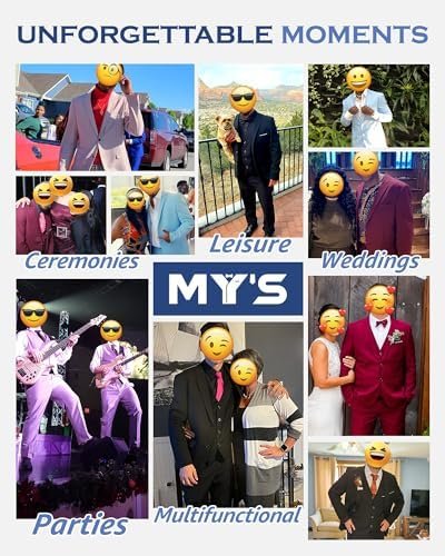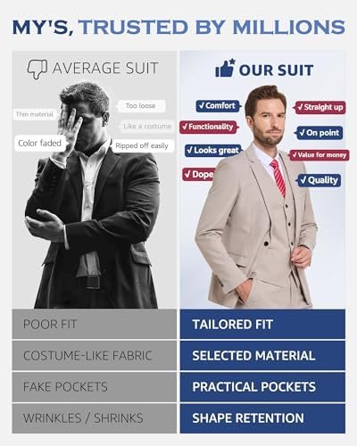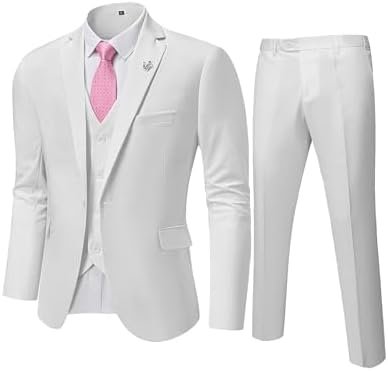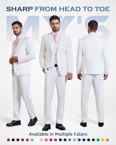 MY’S Men’s 3 Piece Slim Fit Suit Set, One Button Solid Jacket Vest Pants with Tie