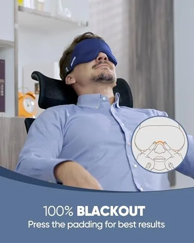 MZOO Sleep Eye Mask for Men Women, Zero Eye Pressure 3D Sleeping Mask, 100% Light Blocking Patented Design Night Blindfold, Soft Eye Shade Cover for Travel, Blue