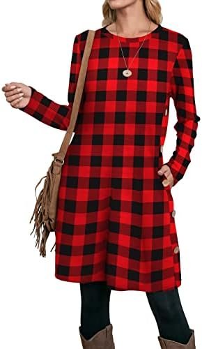 OFEEFAN Womens Long Sleeve Tunic Dres Fall Outfits with Pockets Buttons