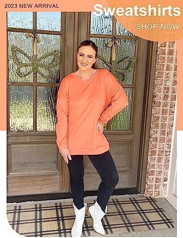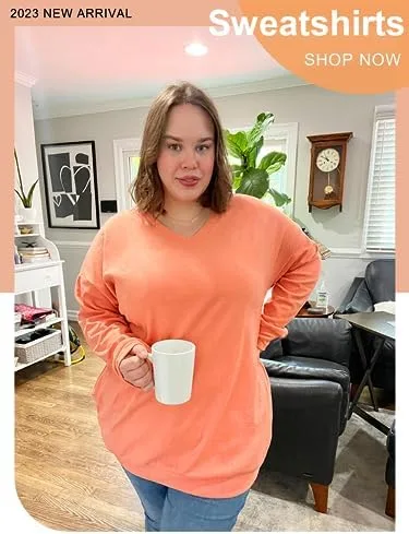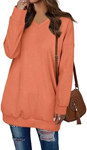 OFEEFAN Women’s Sweatshirts V Neck Oversized Long Sleeve Pockets Top