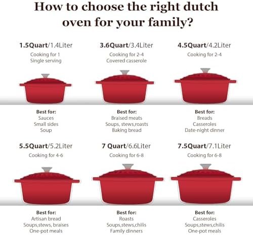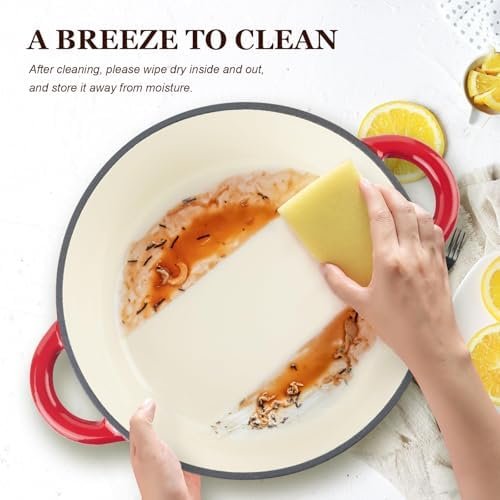 Overmont Enameled Cast Iron Dutch Oven – 5.5QT Pot with Lid Cookbook & Cotton Potholders – Heavy-Duty Cookware for Braising, Stews, Roasting, Bread Baking red
