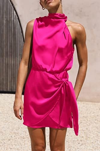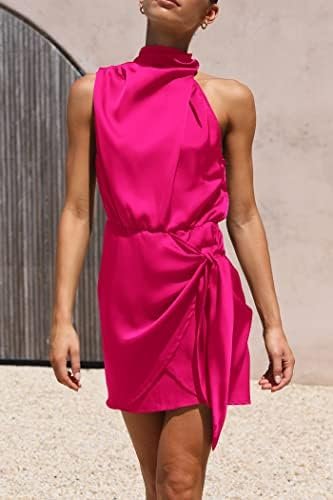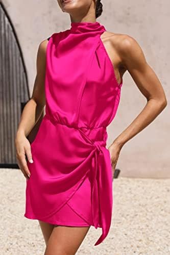 PRETTYGARDEN Women’s Short Formal Satin Dress Summer Sleeveless Mock Neck Tie Waist Cocktail Party Dresses