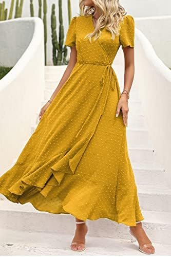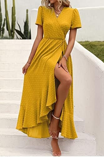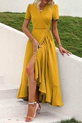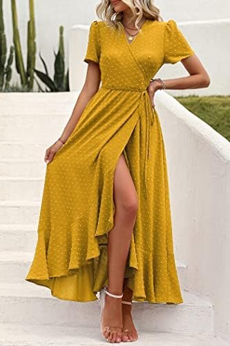 PRETTYGARDEN Women’s Summer Wrap Maxi Dress Casual Boho Floral V Neck Short Sleeve Ruffle Hem Split Beach Long Dresses