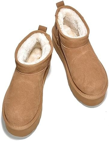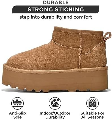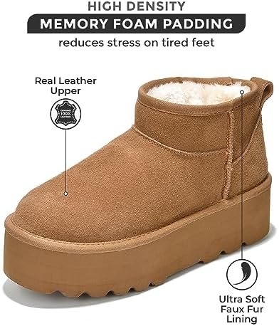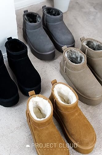 Project Cloud 100% Genuine Suede Leather Ankle Boots for Women – Fur Boots Memory Foam Insole Womens Boots – Anti-Slip Mini Platform Boots – Lightweight Winter Boots for Women – Snow Boots (Huggy)