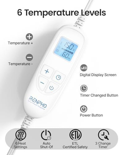 Smart Heating & Timer Settings: LED controller of this FSA HSA eligible heat pad features 6 heat settings and 3 timing settings (30, 60 and 90 minutes) to meet your different needs. The 7-foot-long power cord allows you extra movement while using it. The edges are weighted so that it fits the body perfectly but isn’t too heavy. NOTE: If you do not set a timer, it would auto-shut off after 30 minutes working to avoid potential accident. Please note: not product defect issue, it’s safety design.