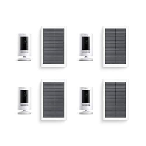 Ring Stick Up Cam Solar | Weather-Resistant Outdoor Camera, Live View, Color Night Vision, Two-way Talk, Motion alerts, Works with Alexa | 4-Pack | White