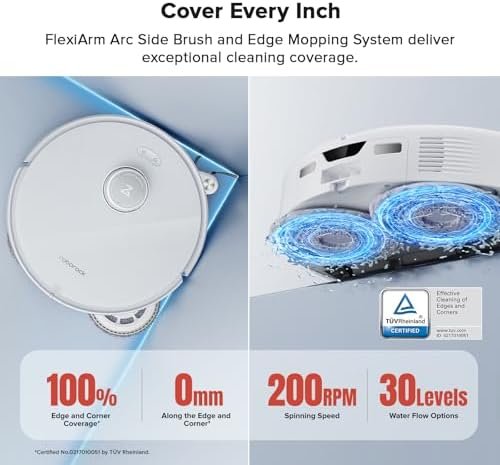 Perfect Edges with FlexiArm Technology: The FlexiArm Arc Side Brush extends to clean along walls, corners, and edges, ensuring every inch of your home is spotless. Paired with the Edge Mopping System, you can trust that even the hardest-to-reach spots are taken care of