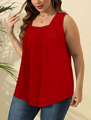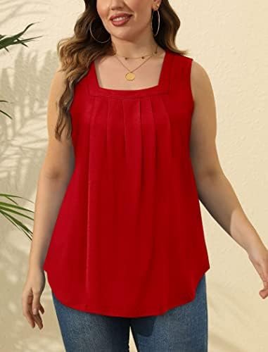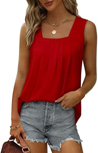 Saloogoe Summer Tank Tops for Women Loose Fit Pleated Square Neck Sleeveless Tops Curved Hem Flowy