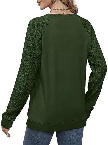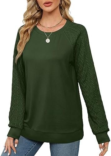Saloogoe Sweatshirts for Women Crewneck Cable Knit Sleeve Sweaters Lightweight Fashion 2024