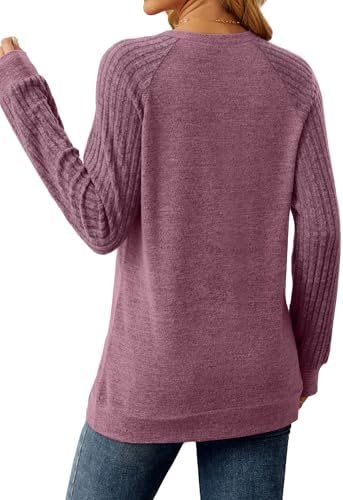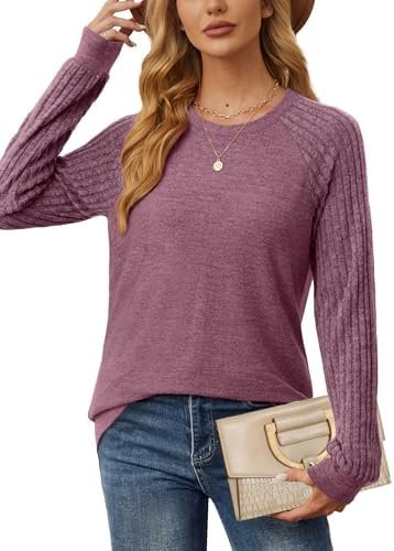 Saloogoe Tunic Sweatshirts for Women Crewneck Lightweight Sweaters Raglan Long Sleeve Shirts Fall Fashion Tops 2024