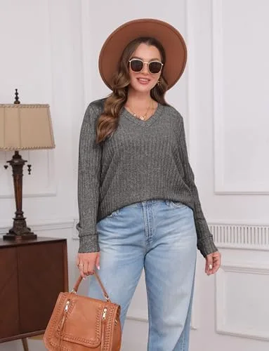 Sampeel Fall Long Sleeve V Neck Shirts Lightweight Tunic Sweater Trendy