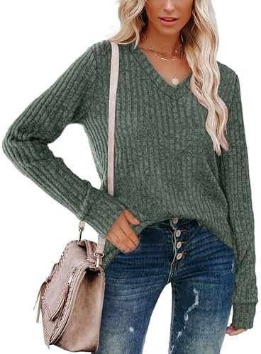 Sampeel Fall Long Sleeve V Neck Shirts Lightweight Tunic Sweater Trendy