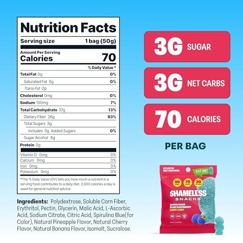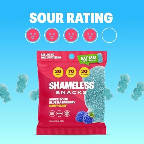 Shameless Snacks – Healthy Low Calorie Snacks, Low Carb Keto Gummies (Gluten Free Candy) – 6 Pack Sour Blue Raspberry