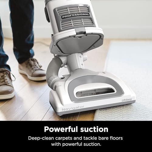 Shark Upright Vacuum, Navigator Lift-Away with Swivel Steering, HEPA Filter, XL Dust Cup, Pet Power, Dusting Brush, and Crevice Tool, Perfect for Pet Hair, White/Silver, NV356E