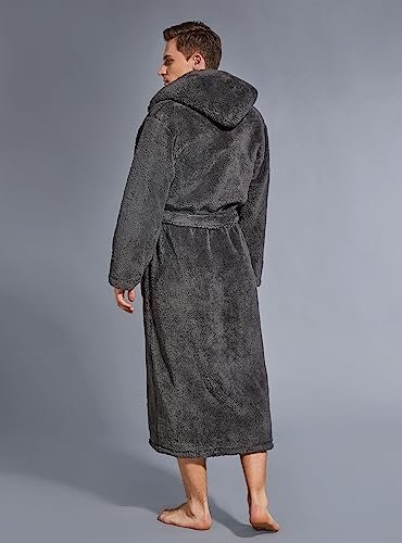 SlumberMee Mens Fleece Plush Robe with Hood Ultra Soft Fluffy Full Length Long with Pockets Luxurious House Coat