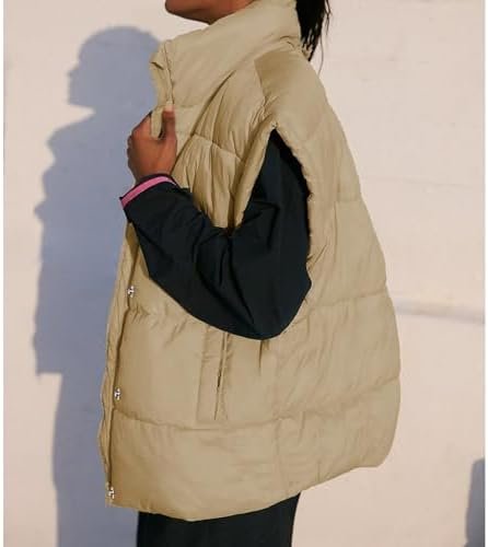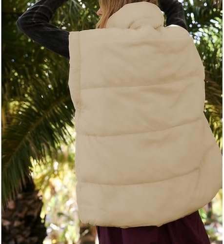 Songling Womens Oversized Puffer Vest Stand Collar Full Zip Sleeveless Bubble Puffer Vest Quilted Padded Warm Coat Outwear