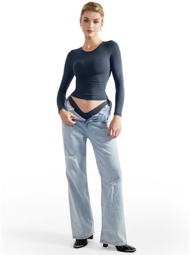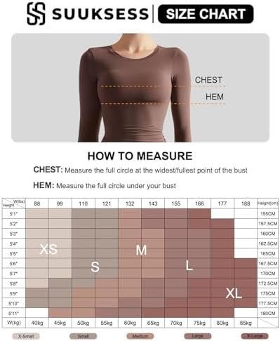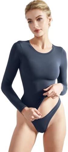 SUUKSESS Women Double Lined Fitted Basic T Shirts Crew Neck Long Sleeve Crop Top