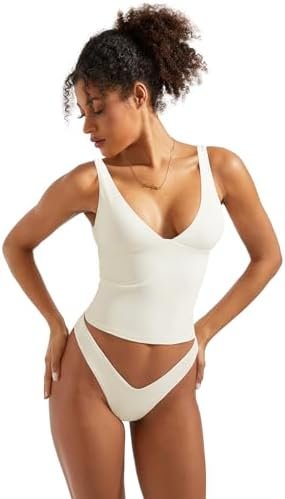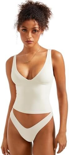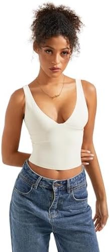 SUUKSESS Women Sexy V Neck Tank Top Summer Sleeveless Going Out Double Lined Basic Tops