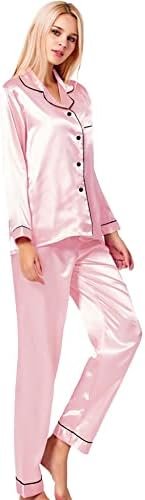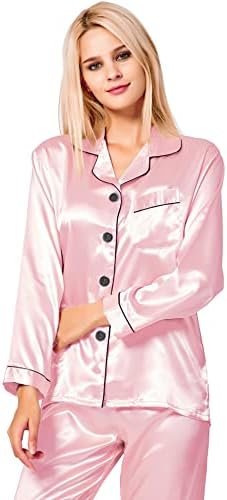 SWOMOG Womens Silk Satin Pajamas Set Long Sleeve Button Down Pj Set XS-3XL