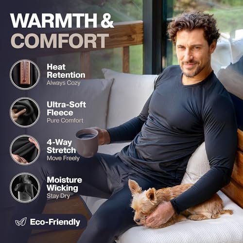 Thermajohn Long Johns Thermal Underwear for Men Fleece Lined Base Layer Set for Cold Weather