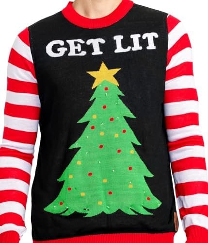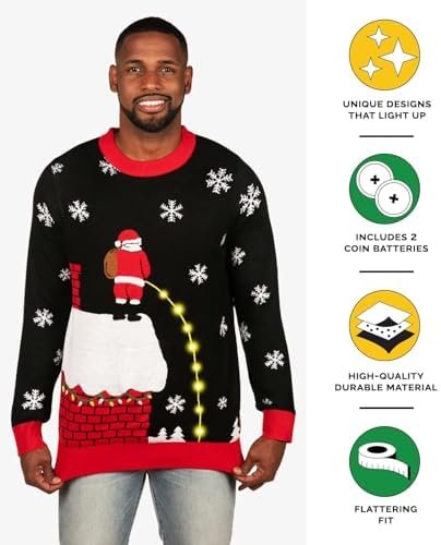 Tipsy Elves Light Up Ugly Christmas Sweaters for Men – Funny Holiday Pullover with LED Lights for Winter Gatherings
