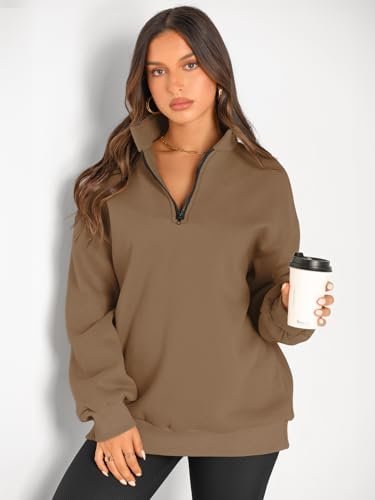 Trendy Queen Womens Half Zip Pullover Oversized Sweatshirts Fall Outfits