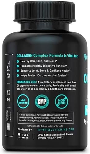 Vital Vitamins Multi Collagen for Women & Men – Type I, II, III, V, X – Grass Fed, Non-GMO – 150 Capsules
