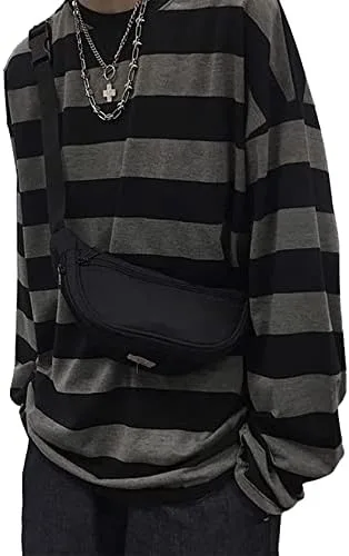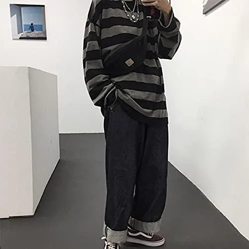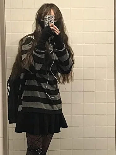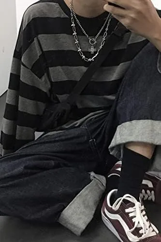 Women Harajuku Oversized Stripe Casual Long Sleeves Crewneck T-Shirt Tee Tops