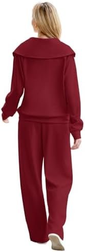XIEERDUO Lounge Sets For Women 2024 Half Zip Sweatshirt And Wide Leg Sweatpant 2 Piece Outfits Sweatsuit Tracksuit
