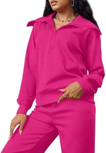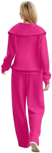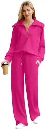 XIEERDUO Lounge Sets For Women 2024 Half Zip Sweatshirt And Wide Leg Sweatpant 2 Piece Outfits Sweatsuit Tracksuit