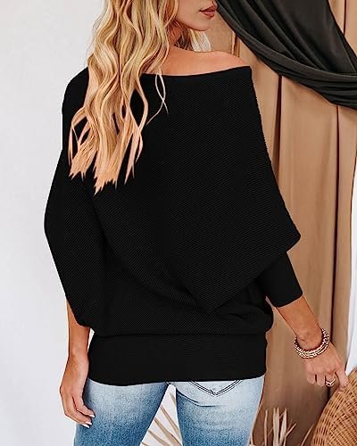 Zenlonr Women’s Fall Sweaters 2025 Casual Long Batwing Sleeve Loose Off Shoulder Knit Pullovers Jumper Tops